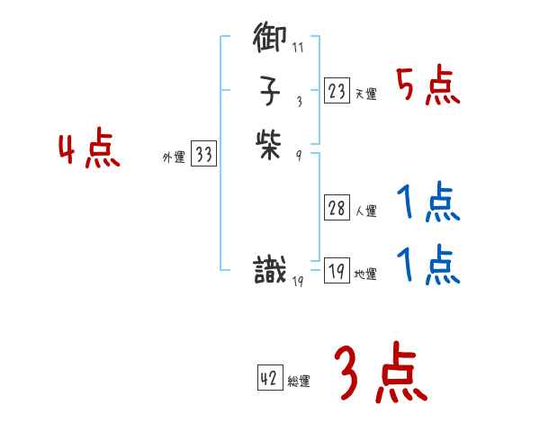 御子柴識さんの画数の鑑定結果