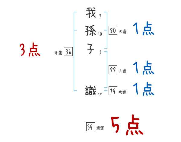外運![]() | 我孫子識さんの外運は36画の3つ星!先見性が豊かです。多少神経質で苦労することも。 生活面を象徴する運勢です。外部から受ける影響力を表し、結婚運、家庭運や職場、環境への順応性を表します。 |