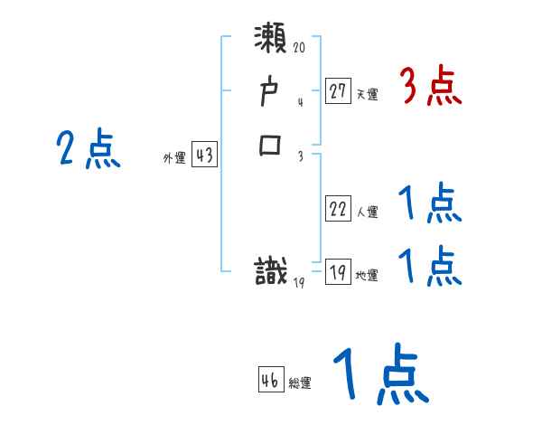 総運![]() | 瀬戸口識さんの総運は46画の1つ星!迷走することが多く苦労するかも。目先のことにとらわれないように。 あなたの人生を表す1番重要な運勢です。生涯を通じて影響する総合運となり、主に50歳以降の晩年期に影響を及ぼします。 |