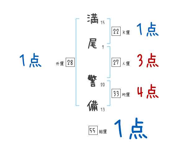 満尾警備さんの画数の鑑定結果