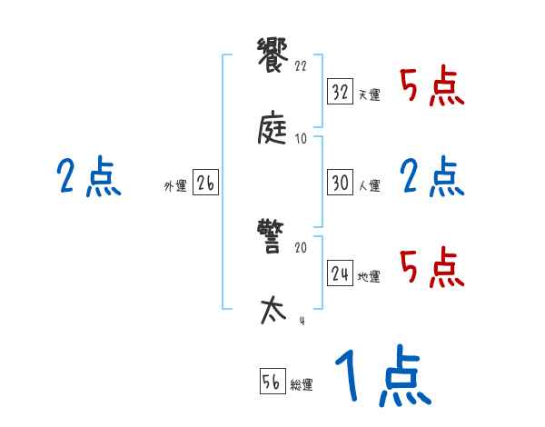 饗庭警太さんの画数の鑑定結果