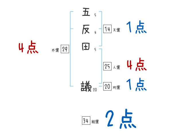 五反田議さんの画数の鑑定結果