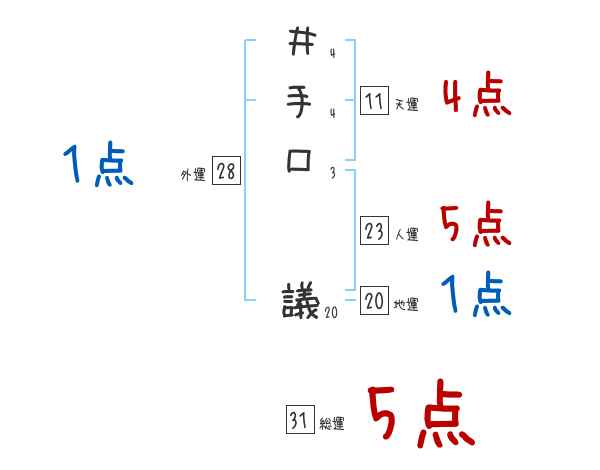 天運![]() | 井手口議さんの天運は11画の4つ星!着実に富や地位を得る幸運な人生。 家系が持つ宿命的な運勢を表します。祖先から受け継いだ苗字ですので自分の力が及びません。家柄を象徴します。 |