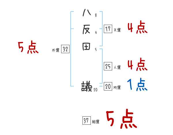 八反田議さんの画数の鑑定結果