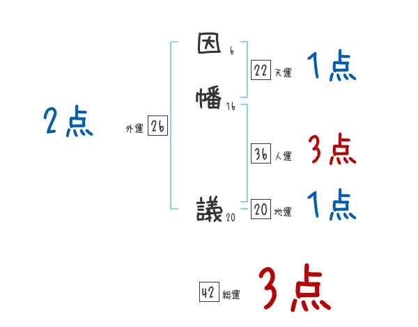 外運![]() | 因幡議さんの外運は26画の2つ星!波瀾万丈かも。信頼できる人を大事にしましょう。 生活面を象徴する運勢です。外部から受ける影響力を表し、結婚運、家庭運や職場、環境への順応性を表します。 |