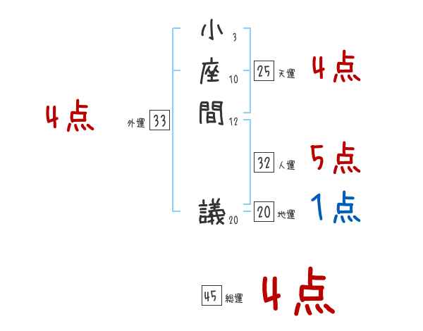 小座間議さんの画数の鑑定結果