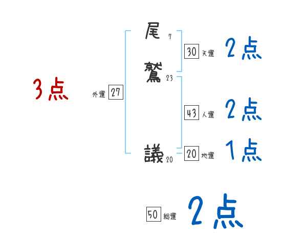 尾鷲議さんの画数の鑑定結果