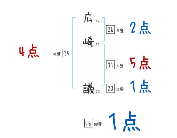 広崎議さんの画数の鑑定結果