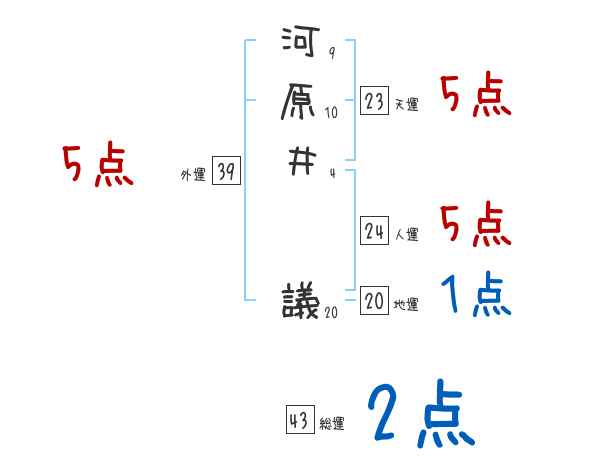 河原井議さんの画数の鑑定結果