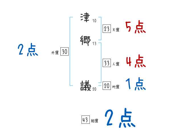 津郷議さんの画数の鑑定結果
