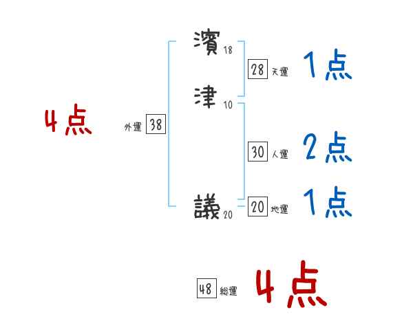天運![]() | 濱津議さんの天運は28画の1つ星!家庭環境に注意。スポーツで活躍できる能力があるかも。 家系が持つ宿命的な運勢を表します。祖先から受け継いだ苗字ですので自分の力が及びません。家柄を象徴します。 |