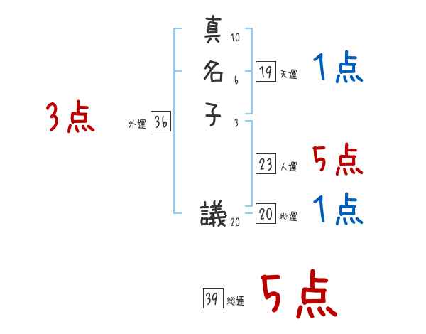 真名子議さんの画数の鑑定結果