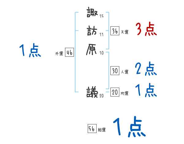 総運![]() | 諏訪原議さんの総運は56画の1つ星!消極的で無気力になりがち。誠実な気持ちが必要でしょう。 あなたの人生を表す1番重要な運勢です。生涯を通じて影響する総合運となり、主に50歳以降の晩年期に影響を及ぼします。 |
