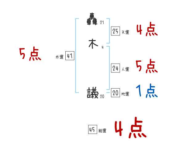 外運![]() | 轟木議さんの外運は41画の5つ星!大志を抱き、目標に向かって実力を発揮し達成する。温和な性格。 生活面を象徴する運勢です。外部から受ける影響力を表し、結婚運、家庭運や職場、環境への順応性を表します。 |