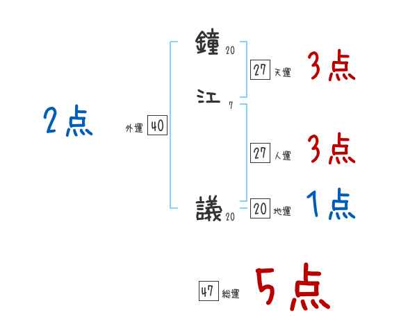 鐘江議さんの画数の鑑定結果