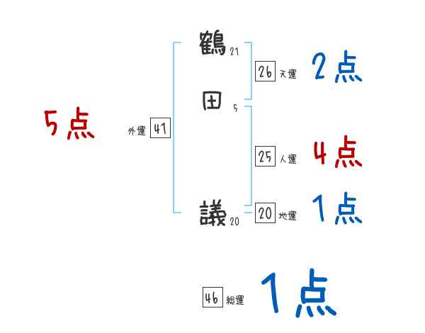 鶴田議さんの画数の鑑定結果
