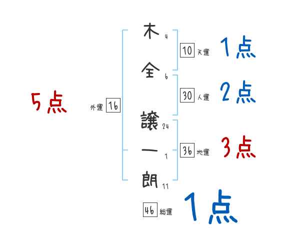 木全譲一朗さんの画数の鑑定結果