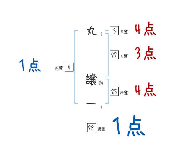 丸譲一さんの画数の鑑定結果