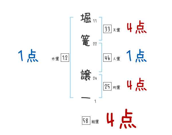 堀篭譲一さんの画数の鑑定結果