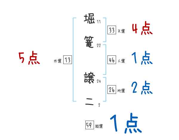 堀篭譲二さんの画数の鑑定結果
