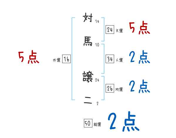 対馬譲二さんの画数の鑑定結果