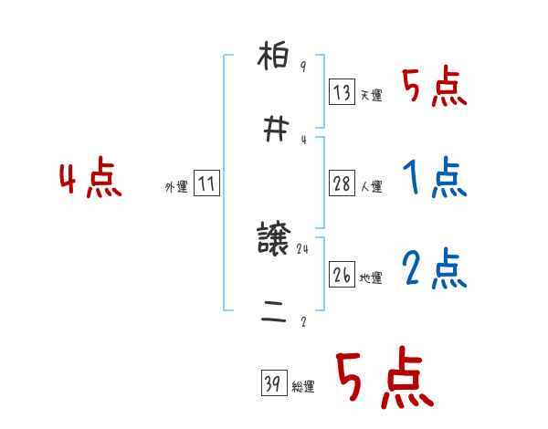 天運![]() | 柏井譲二さんの天運は13画の5つ星!才能に恵まれ人気がある。名声を手に入れる。円満な人生。 家系が持つ宿命的な運勢を表します。祖先から受け継いだ苗字ですので自分の力が及びません。家柄を象徴します。 |