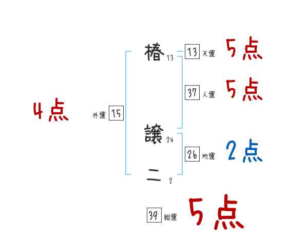 椿譲二さんの画数の鑑定結果