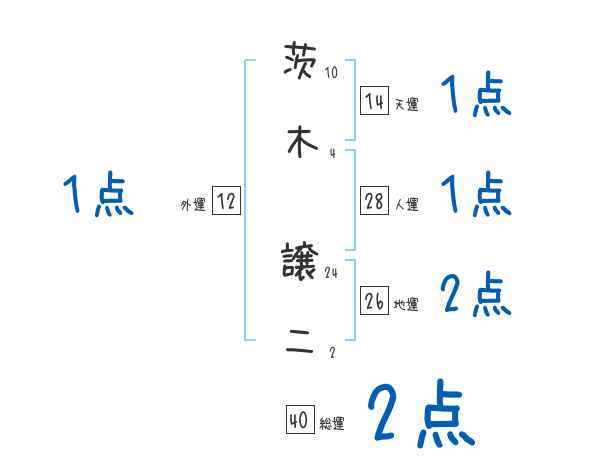 天運![]() | 茨木譲二さんの天運は14画の1つ星!人に対して優しいがストレスを溜め込みがち。人間関係のトラブルを避けるよう気をつけましょう。 家系が持つ宿命的な運勢を表します。祖先から受け継いだ苗字ですので自分の力が及びません。家柄を象徴します。 |