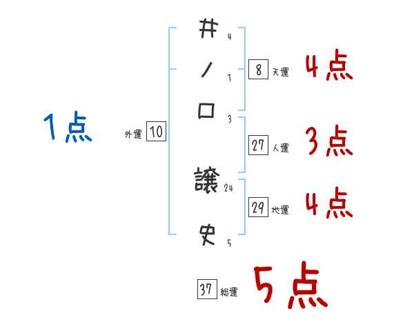 天運![]() | 井ノ口譲史さんの天運は8画の4つ星!勤勉家。根気強く努力し成功する。忍耐力がある。 家系が持つ宿命的な運勢を表します。祖先から受け継いだ苗字ですので自分の力が及びません。家柄を象徴します。 |
