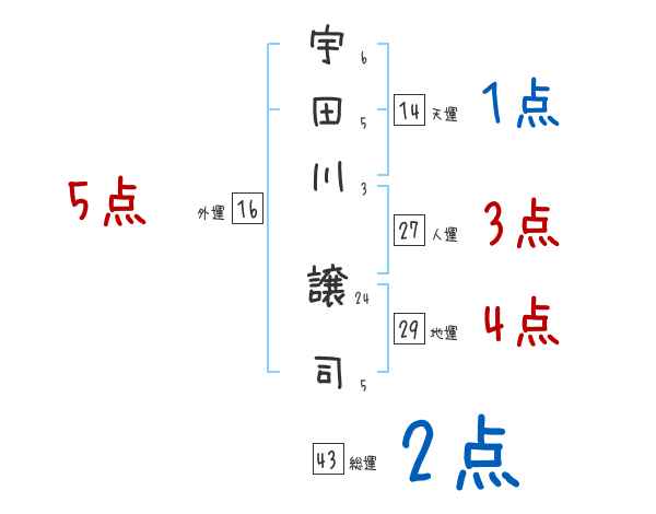 宇田川譲司さんの画数の鑑定結果