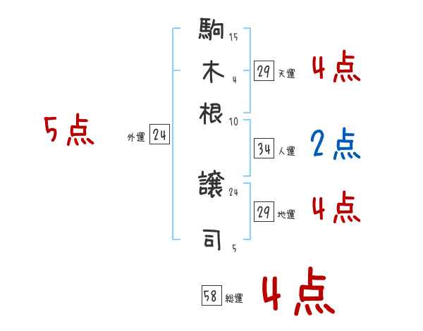 駒木根譲司さんの画数の鑑定結果