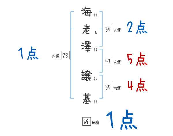外運![]() | 海老澤譲基さんの外運は28画の1つ星!家庭環境に注意。スポーツで活躍できる能力があるかも。 生活面を象徴する運勢です。外部から受ける影響力を表し、結婚運、家庭運や職場、環境への順応性を表します。 |