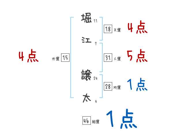 外運![]() | 堀江譲太さんの外運は15画の4つ星!人徳があり出世する。順調に物事を進め円満な人生。 生活面を象徴する運勢です。外部から受ける影響力を表し、結婚運、家庭運や職場、環境への順応性を表します。 |