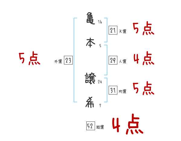 亀本譲希さんの画数の鑑定結果
