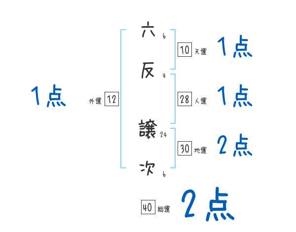 六反譲次さんの画数の鑑定結果