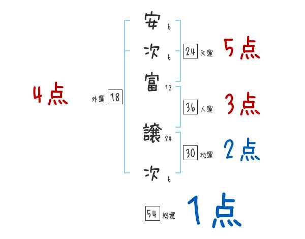 安次富譲次さんの画数の鑑定結果