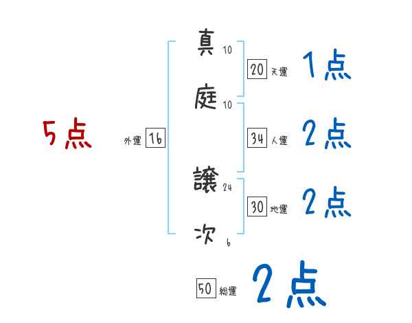 真庭譲次さんの画数の鑑定結果