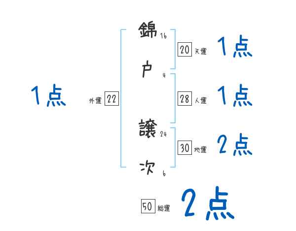 錦戸譲次さんの画数の鑑定結果