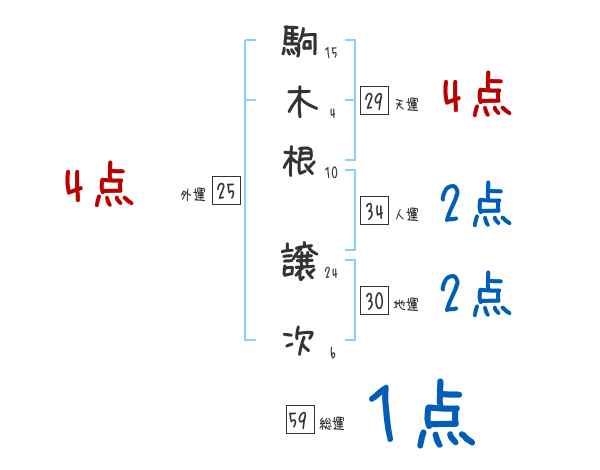 駒木根譲次さんの画数の鑑定結果