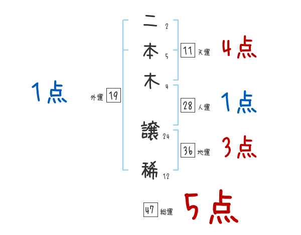 外運![]() | 二本木譲稀さんの外運は19画の1つ星!優れた才能を持ちますが、協調性が足りないことも。周りの人と協力する事を意識しましょう。 生活面を象徴する運勢です。外部から受ける影響力を表し、結婚運、家庭運や職場、環境への順応性を表します。 |