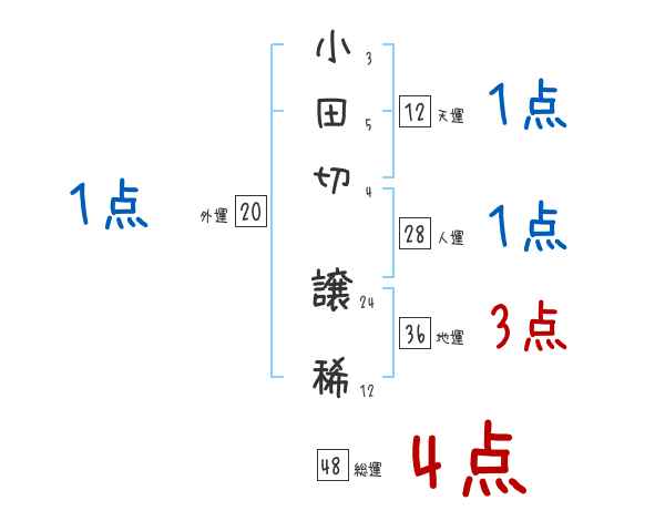 天運![]() | 小田切譲稀さんの天運は12画の1つ星!簡単な失敗で諦めてしまいやすいかも。着実に行動すると良いでしょう。 家系が持つ宿命的な運勢を表します。祖先から受け継いだ苗字ですので自分の力が及びません。家柄を象徴します。 |