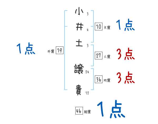 小井土譲貴さんの画数の鑑定結果