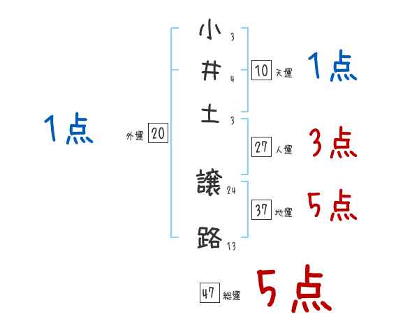 小井土譲路さんの画数の鑑定結果