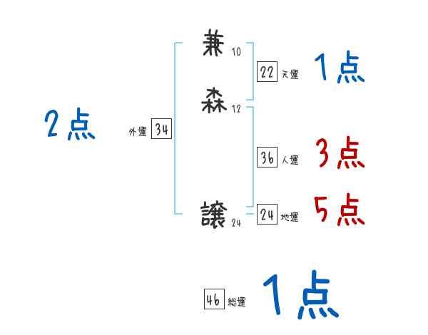 兼森譲さんの画数の鑑定結果
