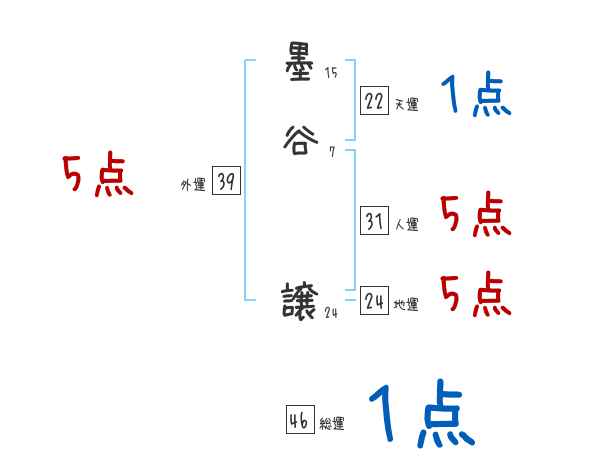 墨谷譲さんの画数の鑑定結果