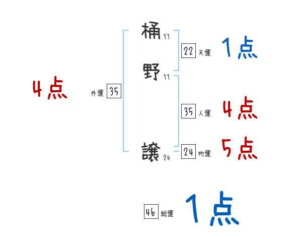 桶野譲さんの画数の鑑定結果