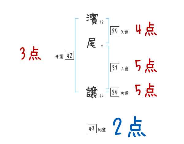 外運![]() | 濱尾譲さんの外運は42画の3つ星!病気に注意。多芸であるが消極的でおとなしい。 生活面を象徴する運勢です。外部から受ける影響力を表し、結婚運、家庭運や職場、環境への順応性を表します。 |