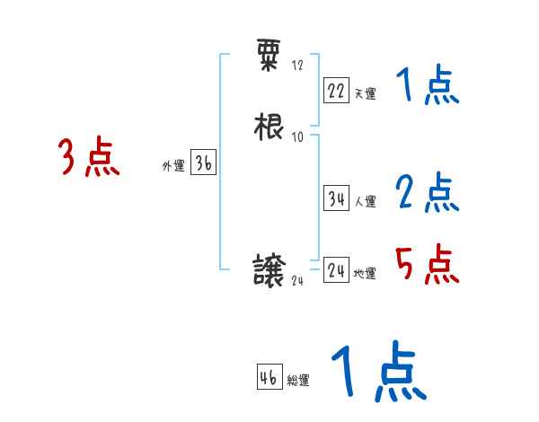 外運![]() | 粟根譲さんの外運は36画の3つ星!先見性が豊かです。多少神経質で苦労することも。 生活面を象徴する運勢です。外部から受ける影響力を表し、結婚運、家庭運や職場、環境への順応性を表します。 |