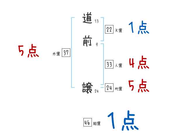 天運![]() | 道前譲さんの天運は22画の1つ星!努力することが苦手ないっぽう手先が器用。芸術性にも優れる。 家系が持つ宿命的な運勢を表します。祖先から受け継いだ苗字ですので自分の力が及びません。家柄を象徴します。 |