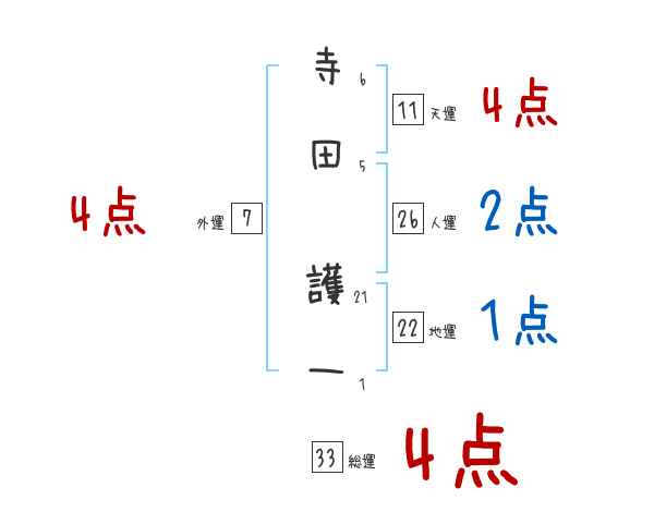 寺田護一さんの画数の鑑定結果